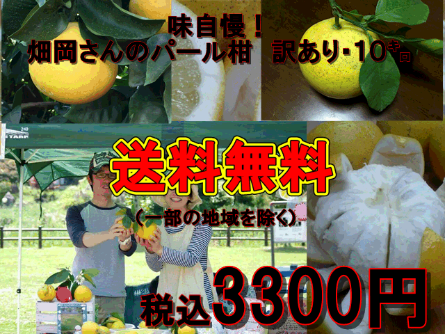 価格: 4,200円 レビュー評価:5.0 レビュー数:2 商品について 商 品 名 訳あり土佐文旦 産 地 高知産 お 届 け 方 法 ヤマト運輸・佐川急便 内 容 量 約10kg(サイズ:3Lまたは4L・家庭用) 保 存 方 法 4?5日くらい 風通しの良い涼しい所に 保存して下さい。 あくまでも目安ですので出来るだけ お早めにお召し上がり下さい。 備 考 ・送料:無料 ただし沖縄は別途1600円、北海道は別途650円、東北は400円の追加料金がかかります。ちょっと外見が 悪いだけの 文旦・・・ 文旦好きにはたまらない大きさ サイズ:3Lまたは4L・家庭用 「土佐文旦」の本場 高知よりお届け♪ (更新日時:2019/02/24 15:45) Supported by 楽天ウェブサービス |
