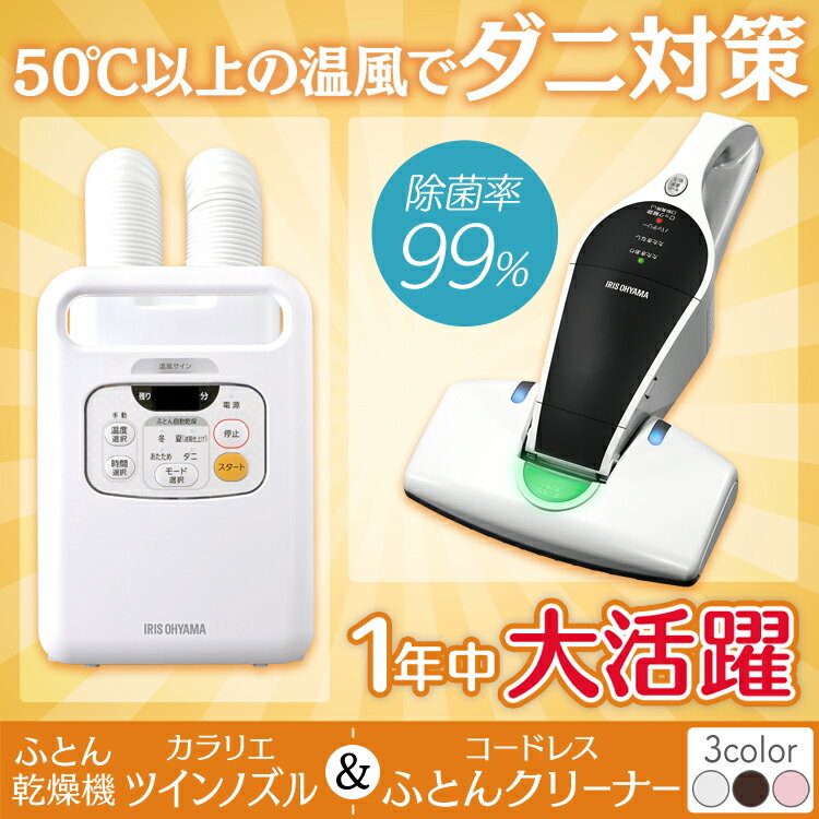 価格: 27,800円 レビュー評価:0.0 レビュー数:0 【ふとん乾燥機カラリエ・ツインノズル・FK-W1】◆2つのふとんを同時乾燥!◆簡単セッティング◆ベッドにも対応◆コンパクト&軽量◆ヒーター出力・約36%UP!※1業界最高水準(※2)のヒーター出力で、温風がすみずみまで行きわたりダブルサイズのふとんも、ふっくら乾燥できます。・※1・アイリスオーヤマ製ふとん乾燥機FK-C2と比較。・※2・2018年4月現在、日本国内の家庭用ふとん乾燥機の消費電力において。◆選べるモード設定季節や用途に応じて、運転モードをカンタン設定。また、8段階(15?180分)で時間設定が可能です。・夏モード:温風で乾燥後、送風で熱気を逃がし、カラッと仕上げます。・冬モード:パワフル温風で一気に乾燥します。・あたためモード:冷えたふとんを短時間であたためます。・ダニモード:約50℃以上の温風でダニ対策ができます。【コードレスふとんクリーナー・IC-FDC1】ダニちりセンサ (更新日時:2018/12/06 21:37) Supported by 楽天ウェブサービス |