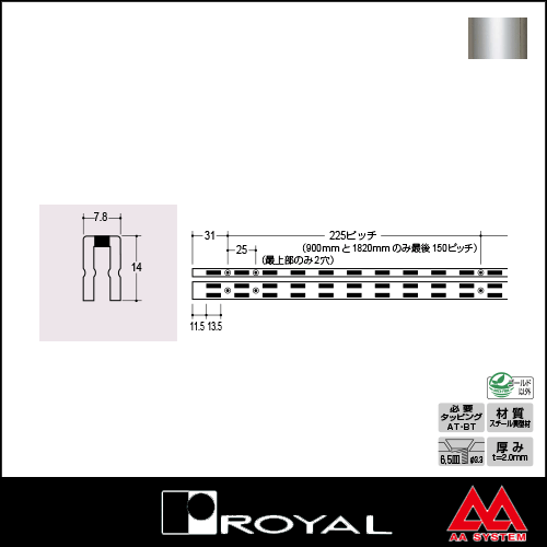 ![]() 価格: 499円 レビュー評価:0.0 レビュー数:0 商品名 ロイヤル チャンネルサポート(シングル) ASF-10 1200mm クローム 品番 ROYAL-ASF-10-1200C サイズ 7.8 x 14mm 長さ 1200mm 厚み 2.0mm ビス穴数 7 (3.3φ穴-6.5φ皿 225ピッチ) 必要タッピング Aタッピング(AT-P) Bタッピング(BT-P) ※別売 材質 スチール異型材 色 クローム 付属品 この商品に付属品はございません 納期 通常1?2営業日ほどで発送可能です 返品・交換 こちらの商品は返品・交換が不可となります 備考 ・切断対応は可能です。(※別途切断費用が必要です) (更新日時:2019/04/09 20:37) Supported by 楽天ウェブサービス |